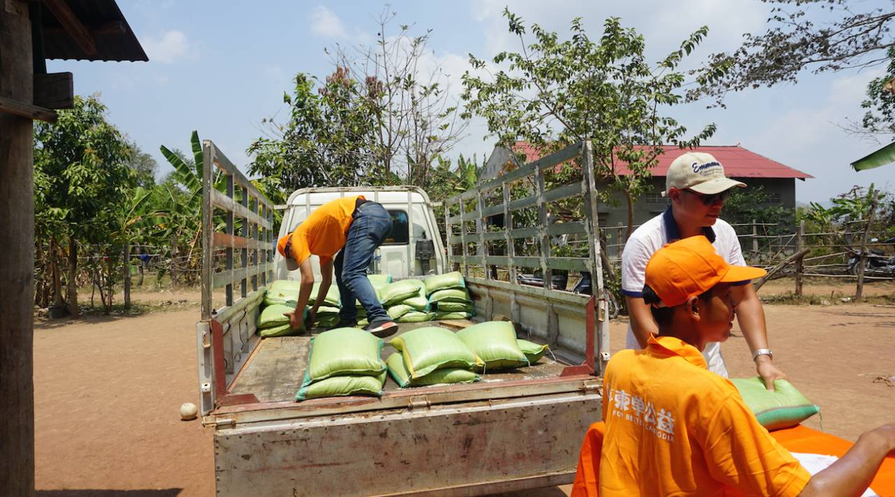 ◆ ◆ ◆ ◆ 特别感谢: 来自ITCS的Dr.Kim, Mr.Timmy 及其团队的鼎力支持! *工作人员正在把大米一袋袋搬下车