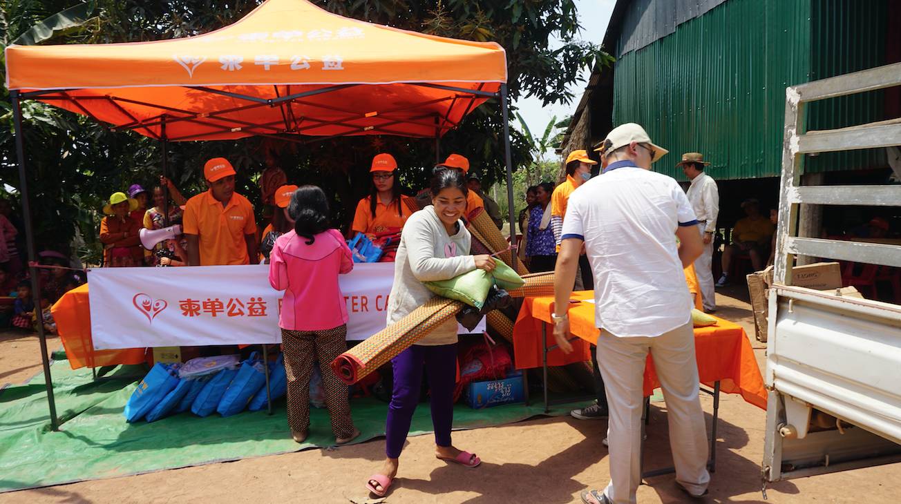 3月11日,满载着爱心和柬埔寨中国同胞捐赠的物资,柬单公益一行人辗转150公里来到了贡布省的Dom Pdaov村。