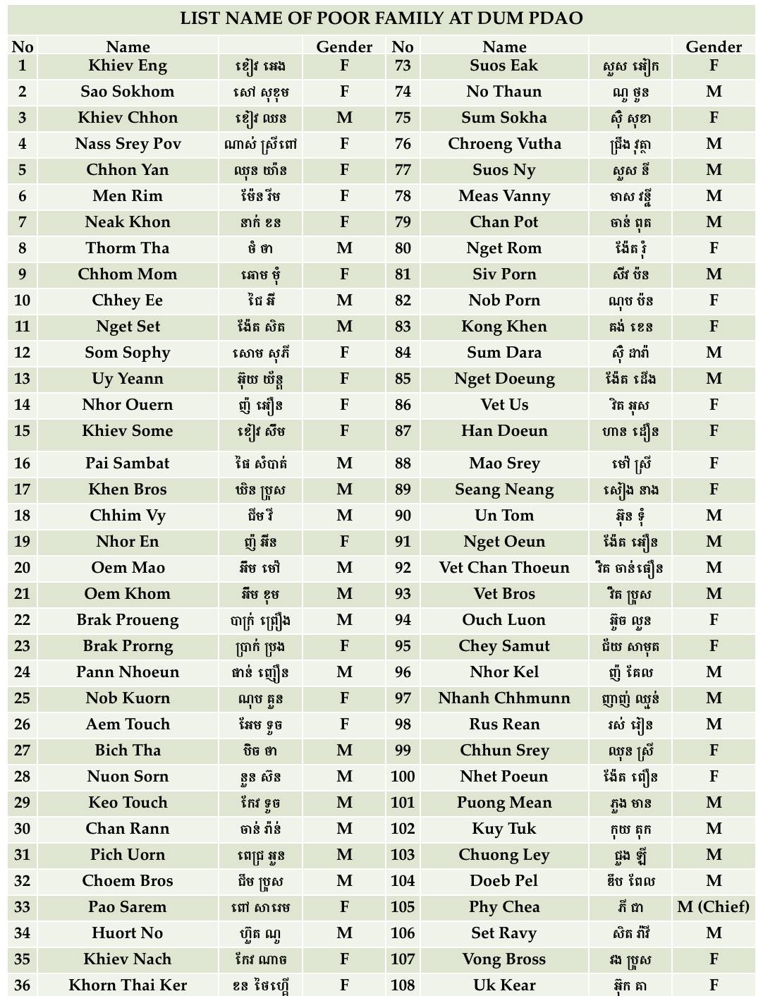 看着村民们那一张张激动的笑脸,我们知道:我们做到了。这些来自柬埔寨民间华人群体的帮助,在我们看来也许微不足道,也许只是举手之劳,但对这些家庭来说却意义巨大。 原来,幸福可以是如此简单的满足。 ◆ ◆ ◆ ◆ *以下为所有受捐家庭名单: