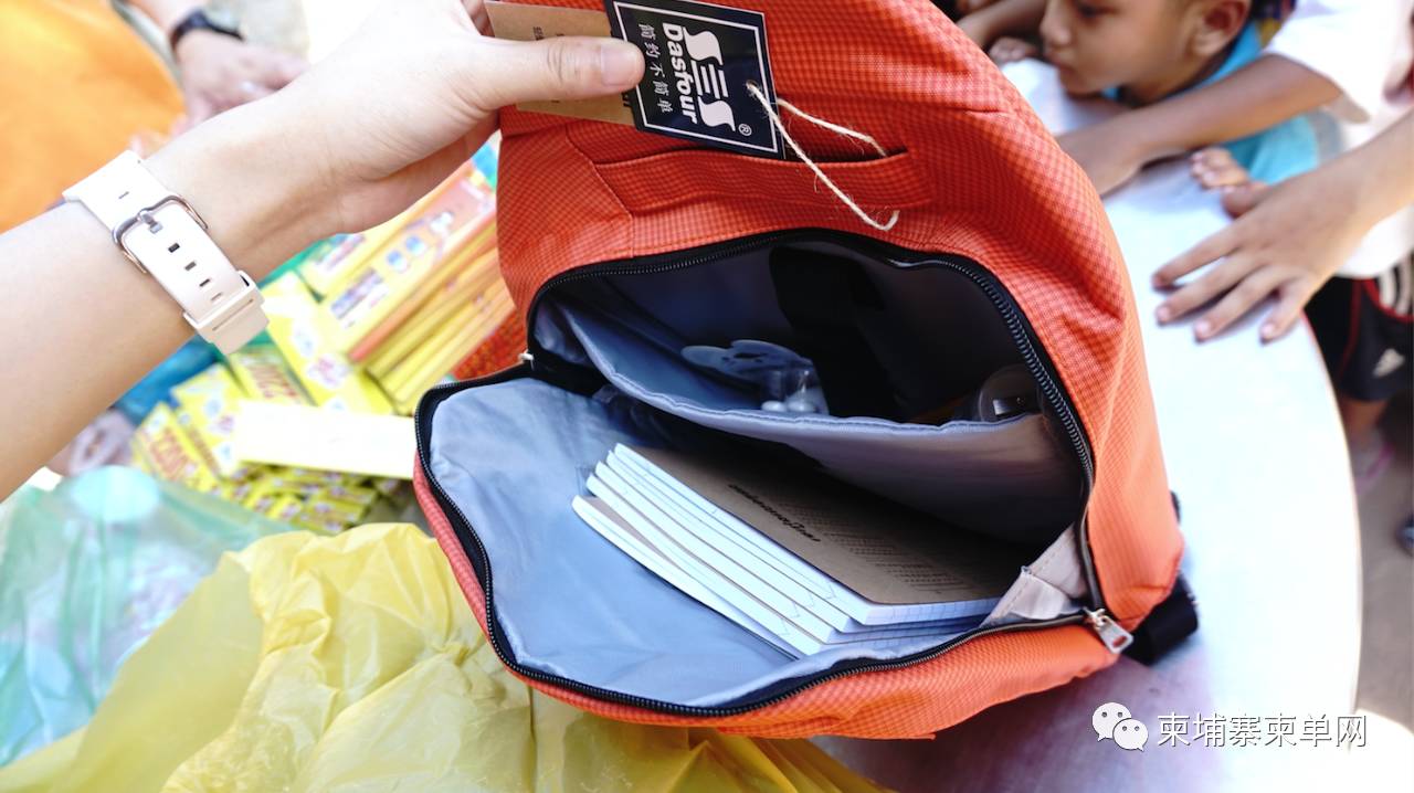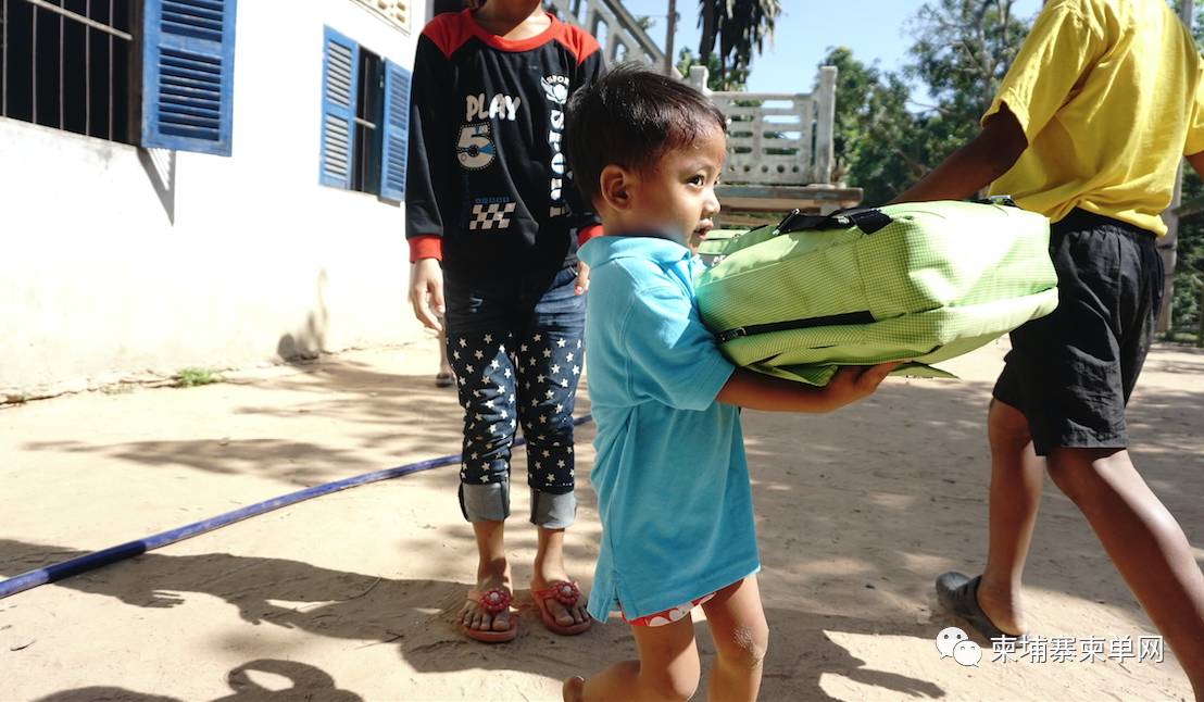 这一次,我们要在孩子们童年的记忆中留下真正的笑声! ◆ ◆ ◆ ◆ 5:30am:出发 我们把募捐来400公斤大米,笔本,书包,儿童衣服等打包进30个“爱心书包”中搬上了大巴,与这一车沉甸甸的爱心一道,志愿者们辗转60公里来到了茶胶省Chisor山附近的New Hope孤儿院。(院名为译者注)
