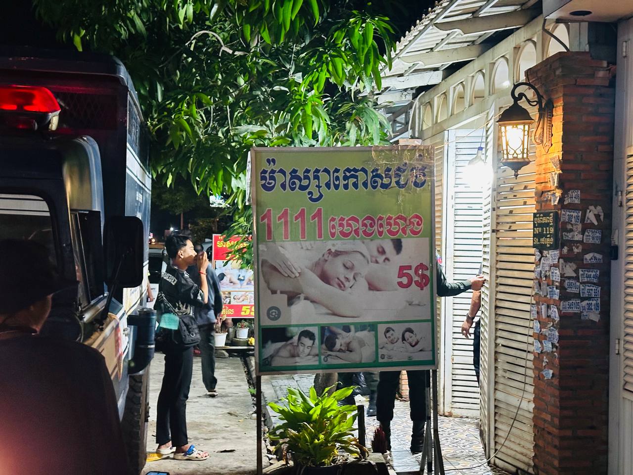 【柬单网综合报道】据柬媒消息,9月30日晚8时45分,金边宪兵联合菩森芷区宪兵开展突击行动,查处位于当地铁路沿线的两家相邻按摩店——“1111 Heng Heng”与“7777”,成功捣毁一处涉嫌暗中提供性交易服务的窝点,并拘留7名女性,现场查获多件相关证物。