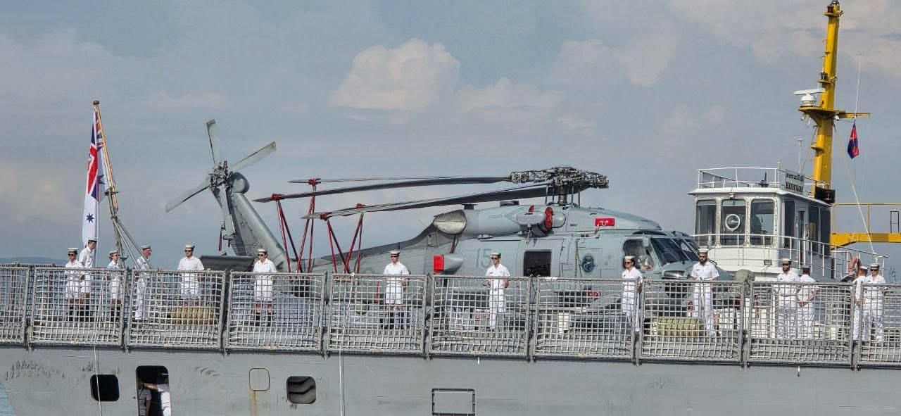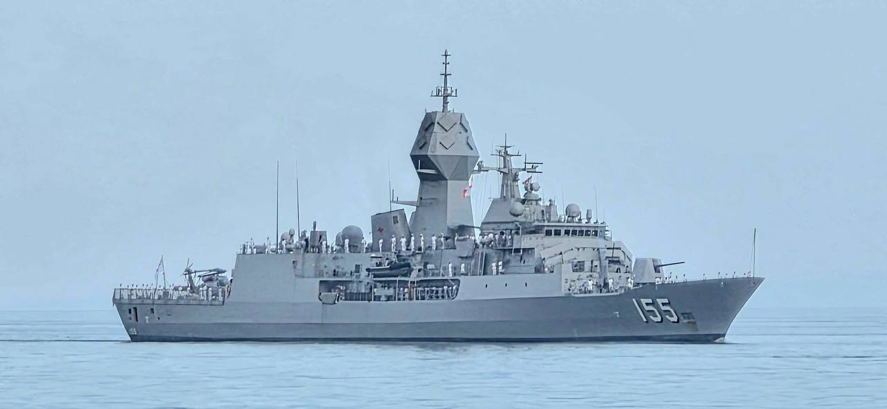 “巴拉瑞特号”护卫舰排水量约3,900吨,全长118米,宽14.8米,吃水深度6.4米,具备防空、反潜与多任务作战能力,是澳大利亚海军主力战舰之一。