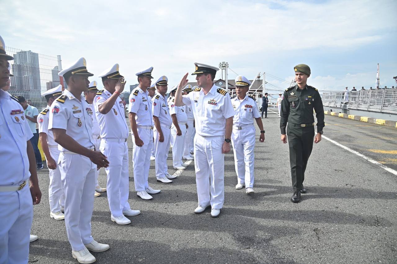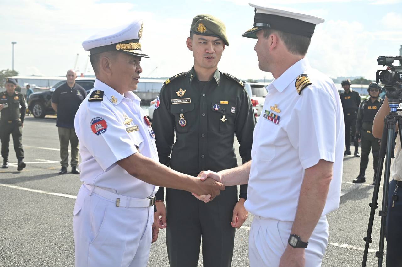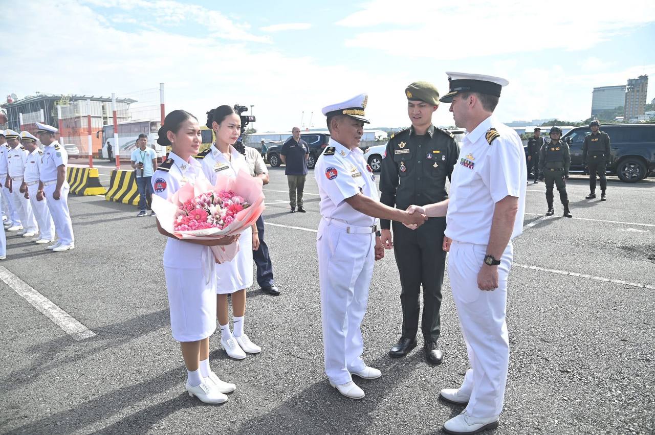 据悉,“巴拉瑞特号”载有192名官兵,由舰长迪恩·尤伦中校率领。柬埔寨海军多名高级军官代表柬方前往码头迎接,并举行欢迎仪式。