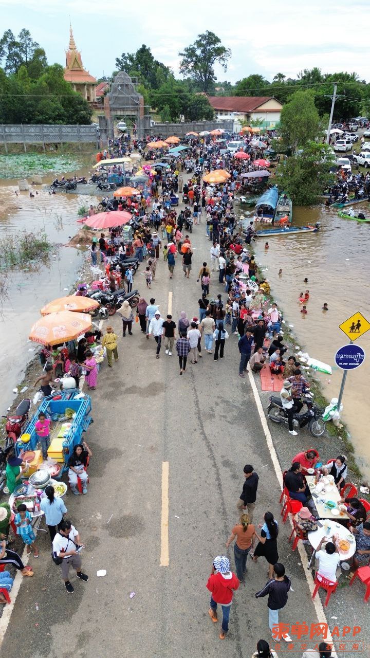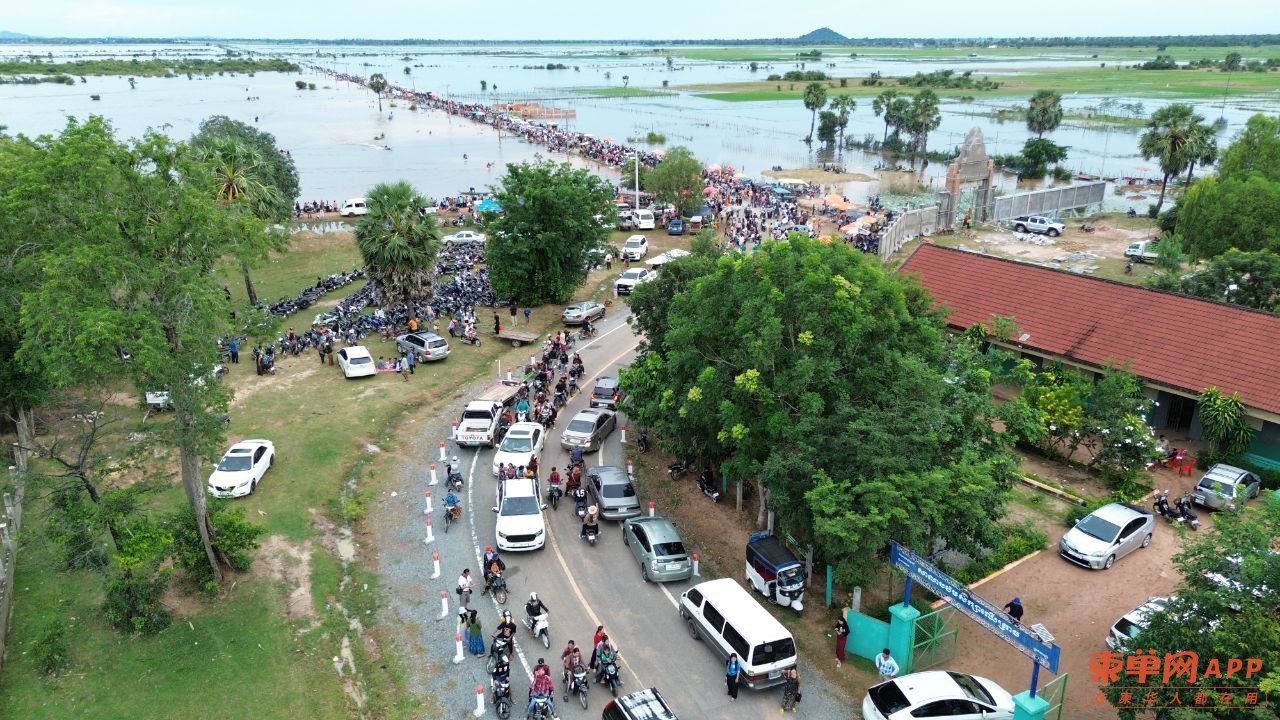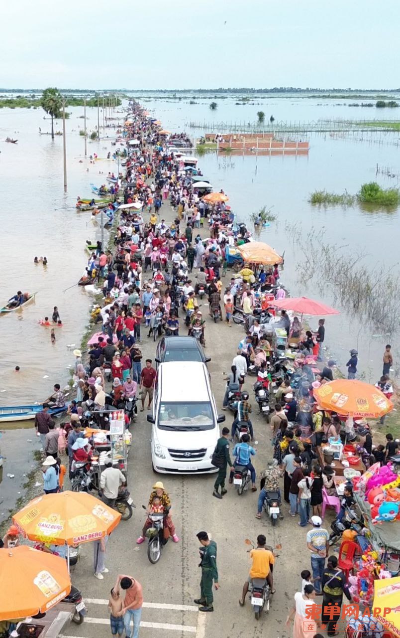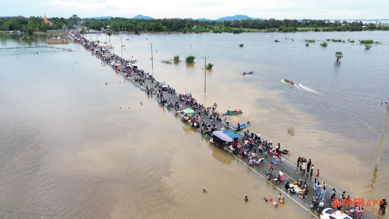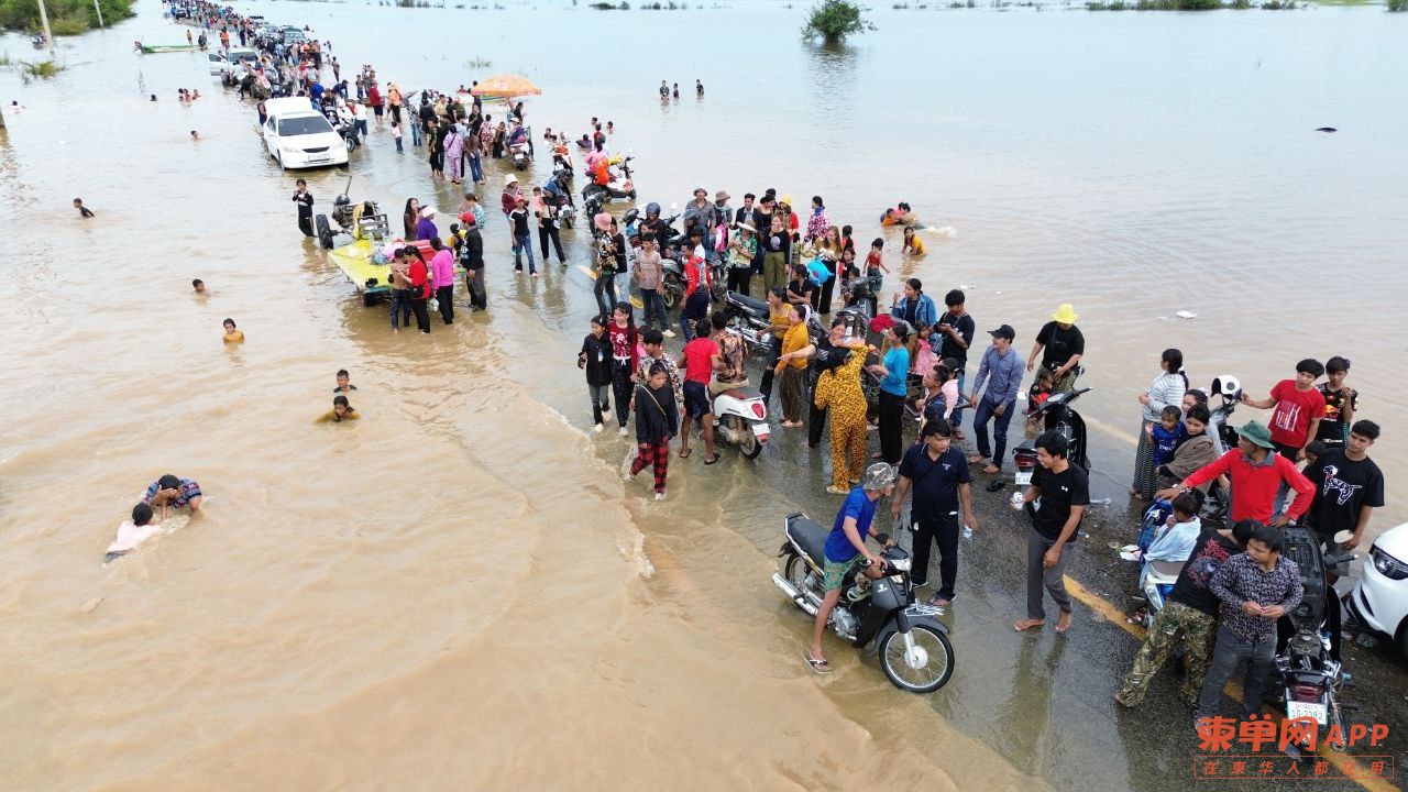 柬单网综合报道】据柬媒消息,连日暴雨导致磅清扬省罗列别县一段道路被洪水淹没,却意外成为当地居民和游客的“天然水上乐园”,吸引数千人前来嬉水玩乐,场面热闹非凡。