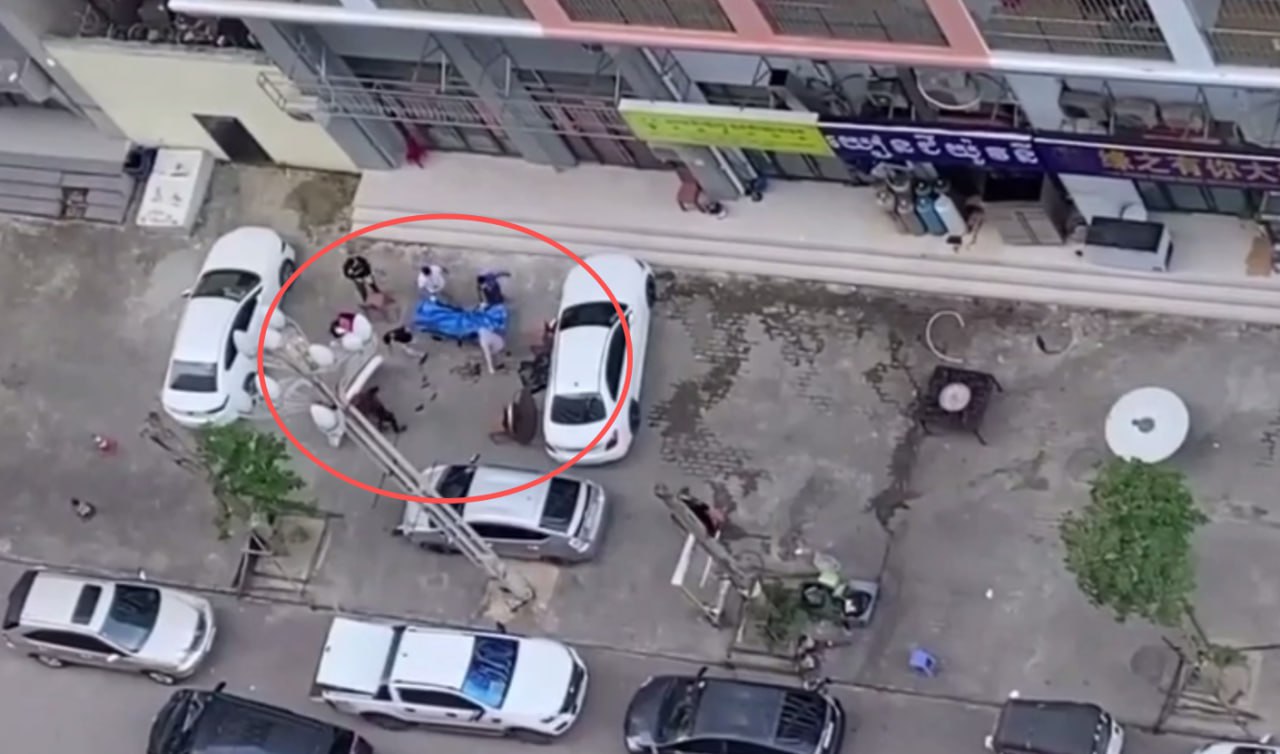 据目击者描述,上述中国男子从楼上坠落后当场身亡。事发不久,一辆私人汽车驶至现场,将遗体匆忙运离。同时,其他车辆和人员携带布帘、工具等物品赶到,对坠落现场进行遮挡与清理。
