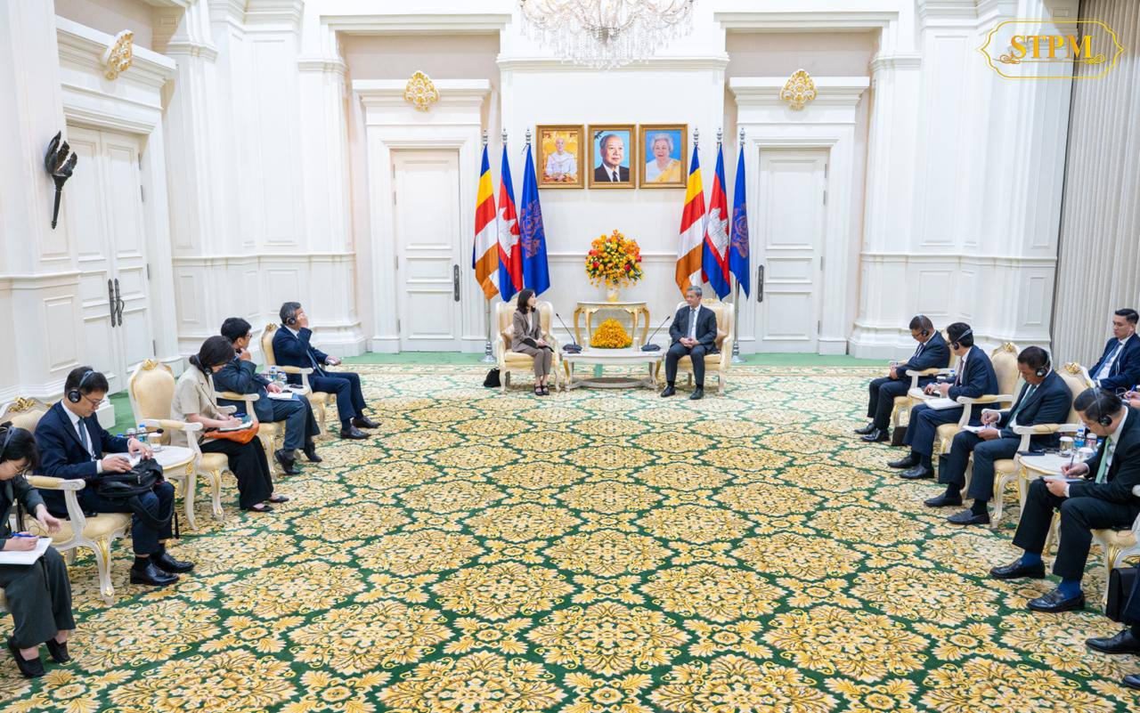 【柬单网综合报道】据柬媒消息,10月16日上午,洪玛耐首相在金边会见到访的韩国外交部第二次官(副部级)金珍我(Kim Jina)及其率领的联合工作组,双方就加强执法安全合作、共同打击跨境犯罪等议题进行交流。
