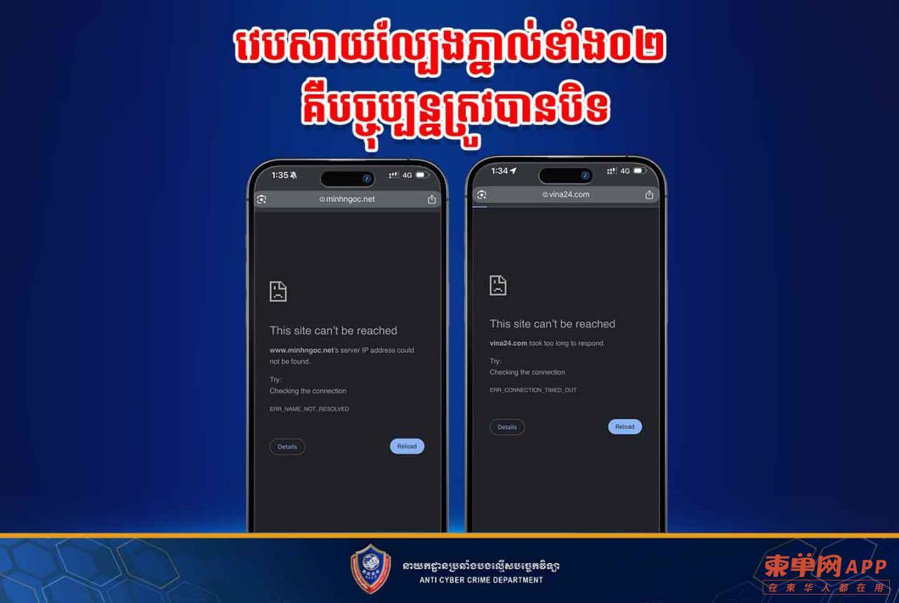 【柬单网综合报道】据柬媒消息,10月17日,国家警察总署反科技犯罪局针对两家涉嫌从事非法网络赌博活动的网站——vina24.com 与 minhngoc.net——展开调查。经核实,目前上述网站均已被关闭。