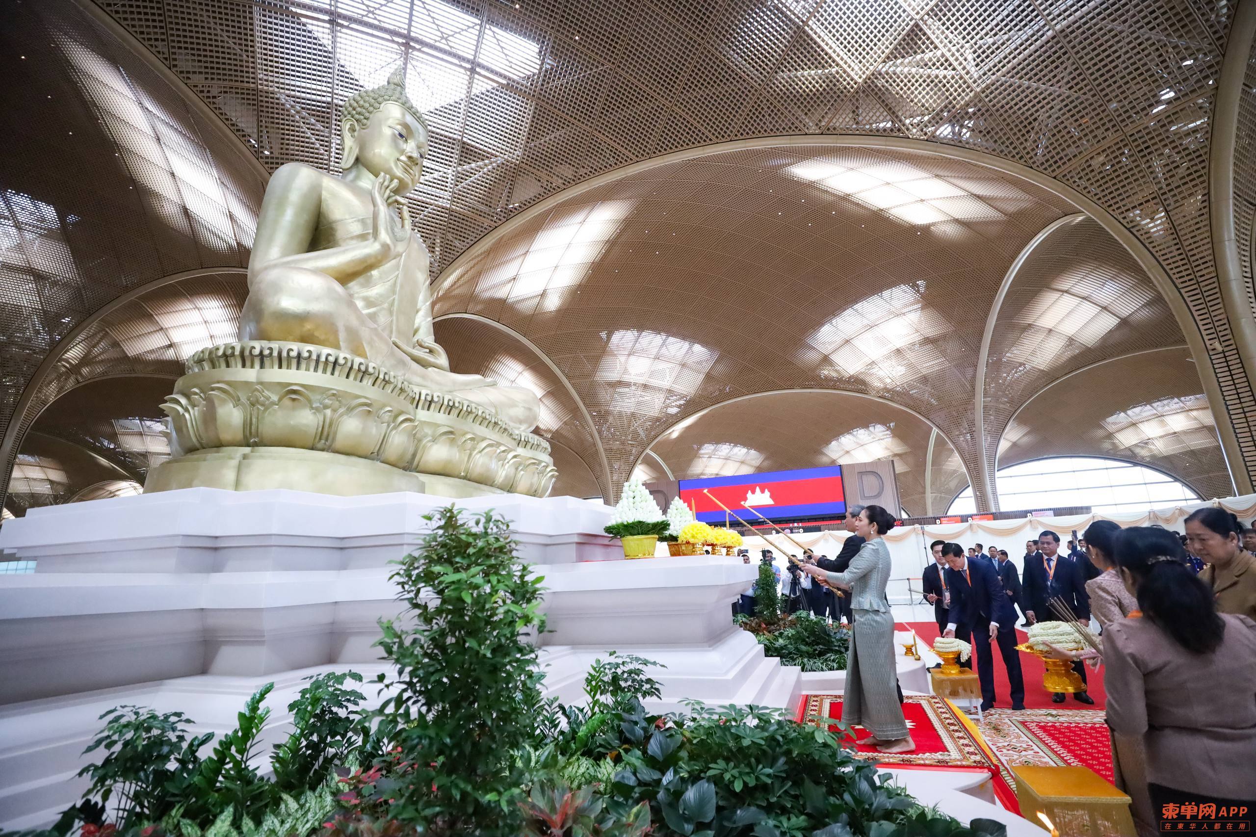 仪式期间,洪玛耐首相夫妇参观新落成的航站楼设施,并与方侨生大公爵共同出席剪彩、祈福及授勋仪式,象征德崇国际机场正式启航,标志着柬埔寨民航发展翻开崭新篇章。