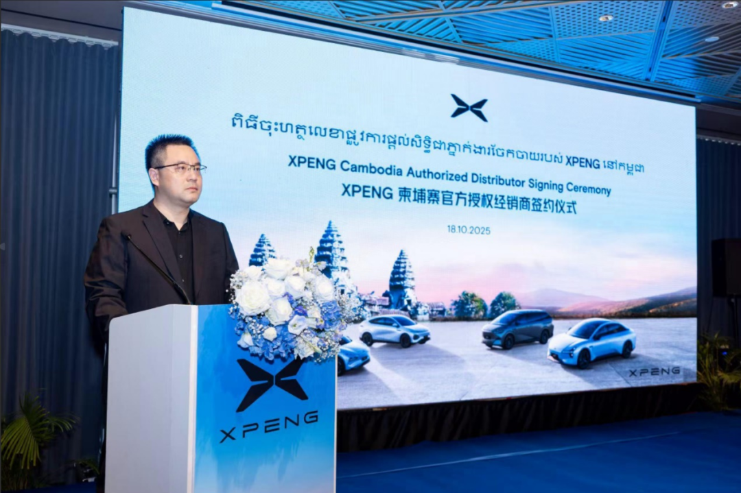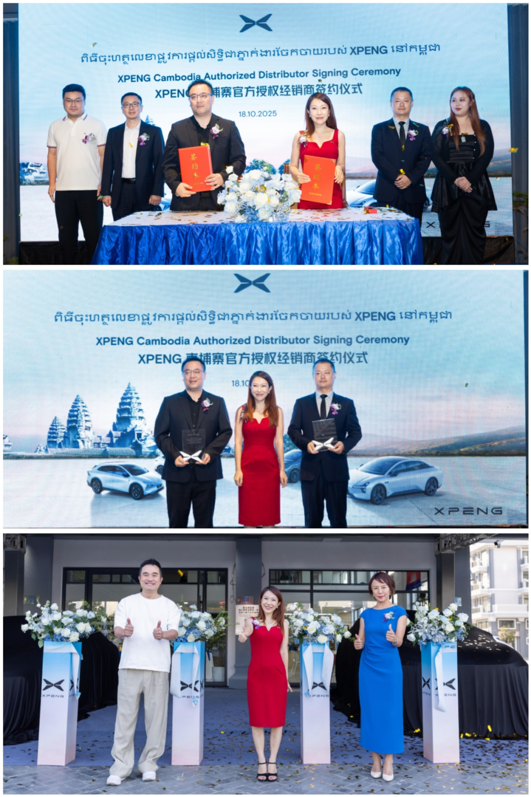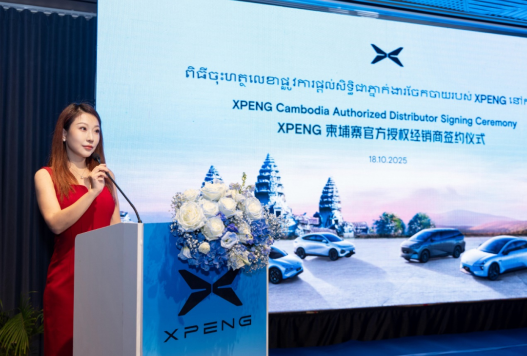 2025年10月18日,柬埔寨金边——NSPENG AUTOMOBILE IMPORT AND EXPORT CO., LTD.(简称NSPENG柬埔寨)举行小鹏汽车官方授权签约仪式,正式成为小鹏汽车在柬埔寨的官方独家经销商。小鹏汽车亚太区负责人张婕、南菱汽车董事长马春欣携高管团队、柬埔寨SDB集团董事长张红军,及柬埔寨各界嘉宾共同出席活动。