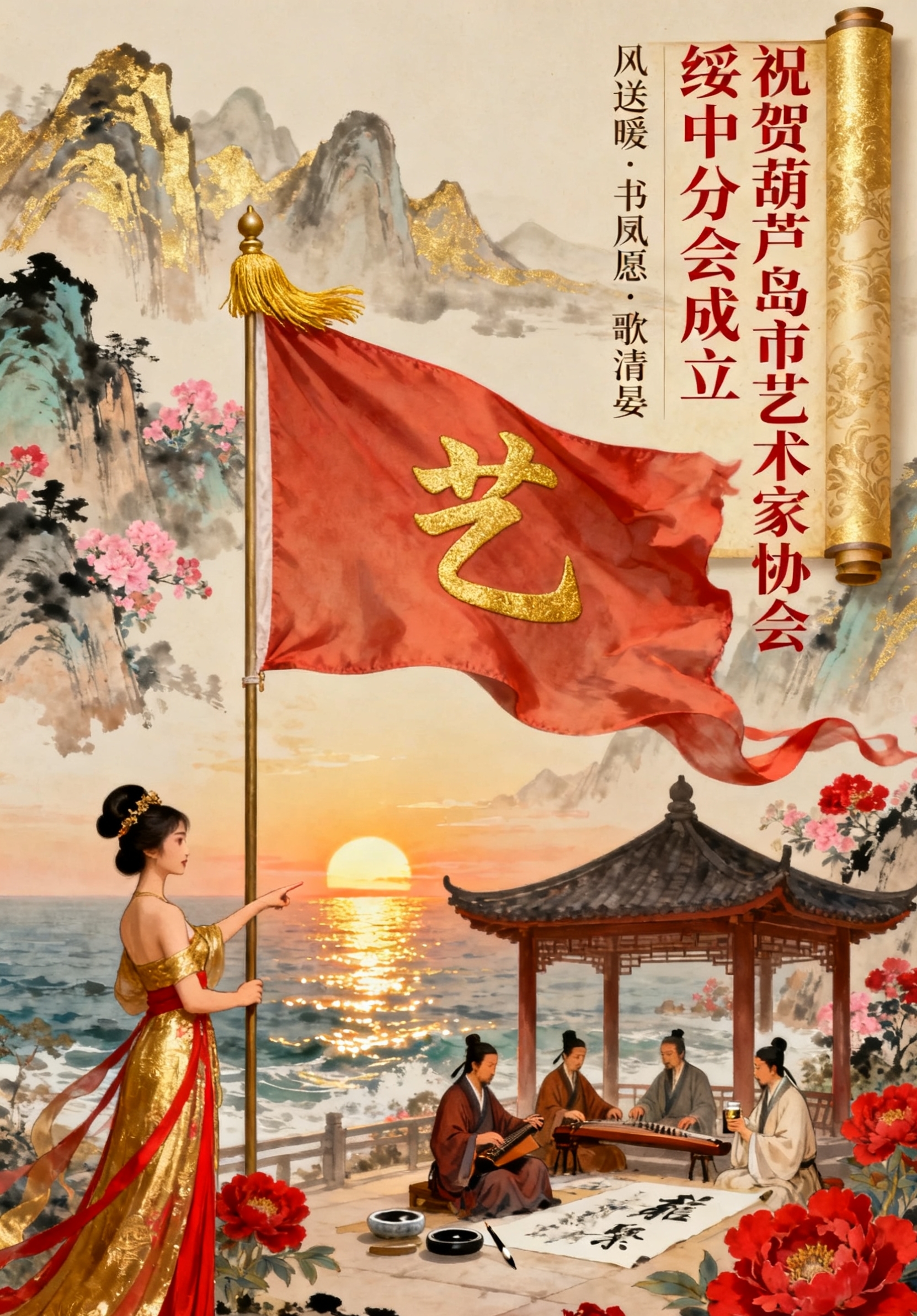 渤海潮生风送暖。艺苑新旗,今日绥中展。女史持筹仪秀婉。贤才雅聚情相挽。