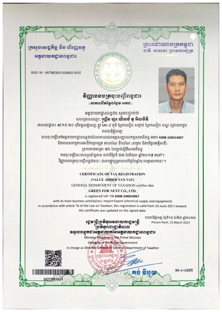 这不仅仅是一纸资质,更是Green for next在柬埔寨市场技术能力、项目经验和商业信誉的集中体现,意味着Green for next具备为各类大型项目提供符合国家标准的电力工程服务的官方许可。