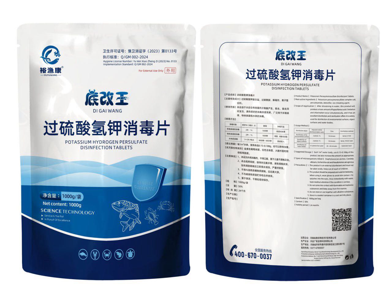 2、50%过硫酸氢钾复合盐:分解淤泥、改底调水、增氧除臭、消毒杀菌,治疗虾蟹弧菌、鱼类出血效果明显。