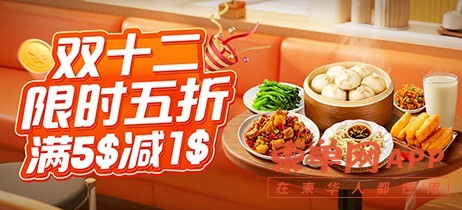精选套餐限时5折,满$5.00减$1.00