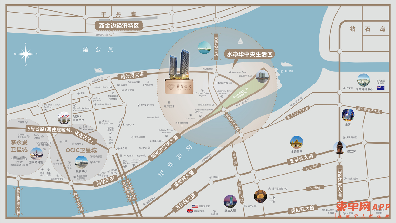 紫晶壹号位于金边三江交汇的一线水岸位置,真正的滨水资产无法复制,是城市价值体系中最稳定的长期板块。