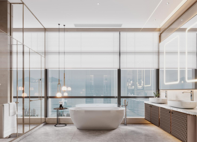 一层两户:套内520㎡,搭配120㎡270°环幕海景阳台,4室2厅5卫;