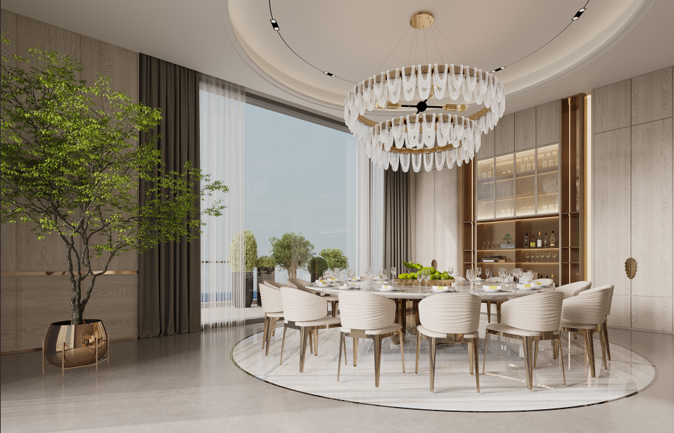 一层一户:套内1035㎡奢阔空间,搭配231㎡270°环幕海景阳台,6室6厅11卫。