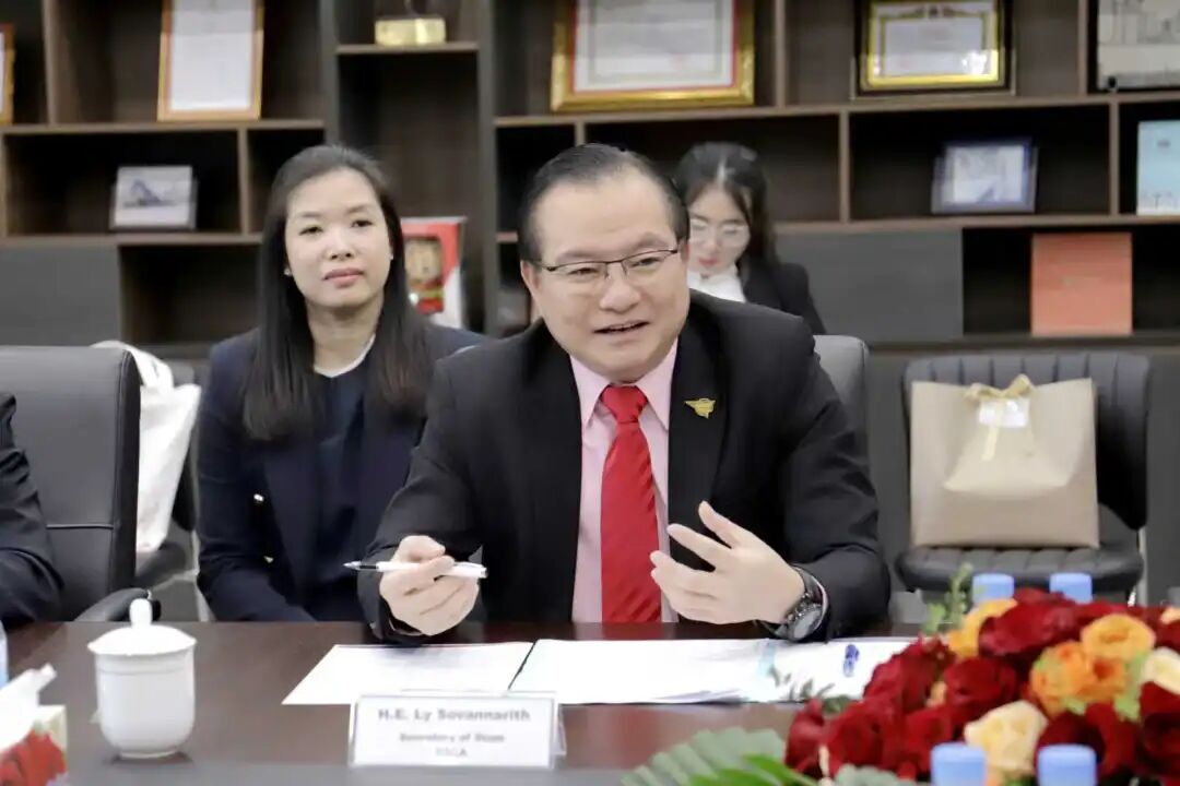 2025年12月17日,中国民用航空飞行学院党委书记林青山先生一行在柬埔寨民航国务秘书处国务秘书 Ly Sovannarith 阁下的陪同下到访柬埔寨航空金边总部,双方围绕人才培养、对外培训、人员招聘等方面开展座谈交流。