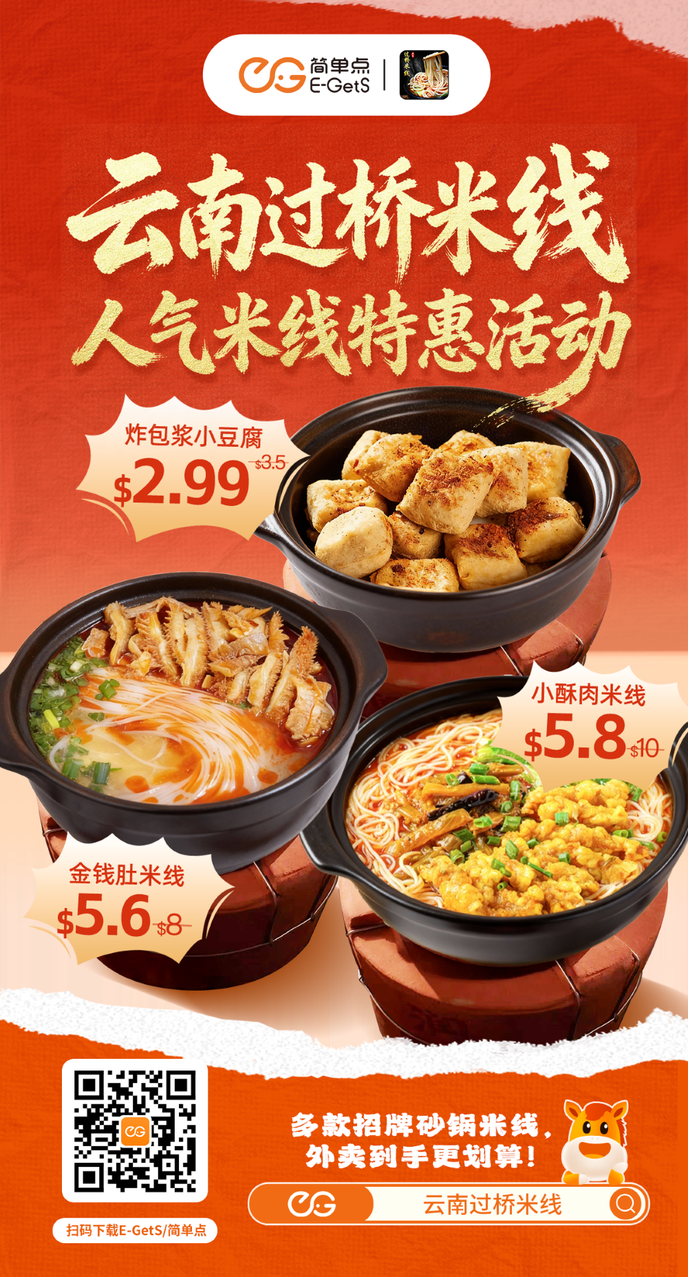 七年三店十万单 一碗米线暖异乡,上E-GetS/简单点5.8折享云南过桥米线! [复制链接]