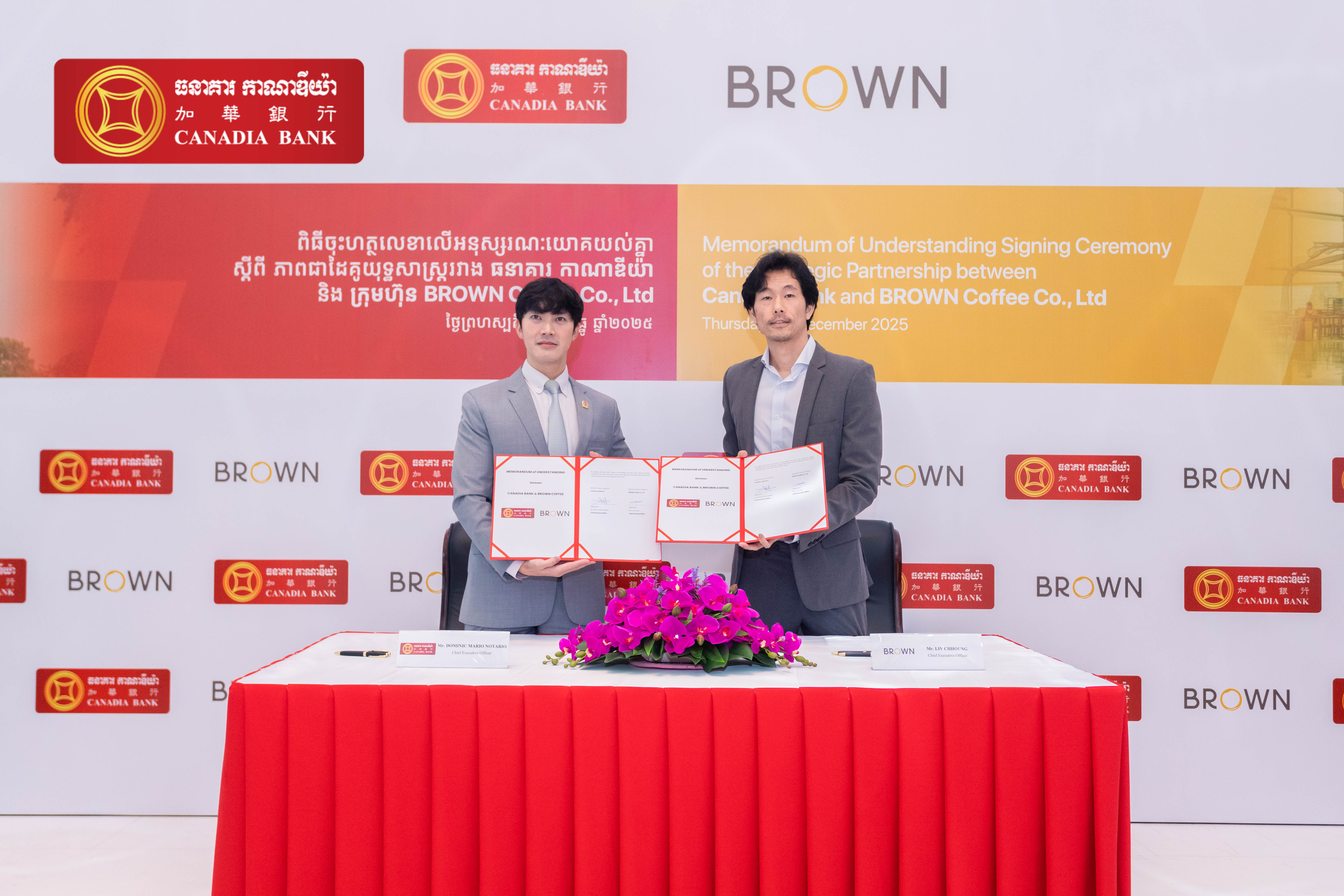 柬埔寨本地规模最大的商业银行——加华银行(Canadia Bank),与代表本土现代生活方式的标志性品牌BROWN正式签署战略合作谅解备忘录。此次合作不仅是两家行业领袖的简单携手,更是对柬埔寨数字化未来与高品质生活方式的一次重要定义。双方将整合优势资源,旨在为全国消费者打造更安全、便捷、丰富的无现金支付与消费体验。