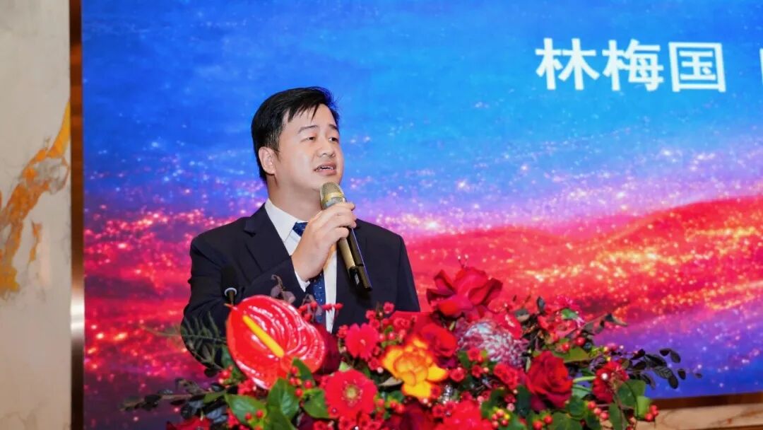 上海市广东商会会长、上海经地集团总裁林梅峰在致辞中,对柬埔寨华人青年总商会成立和金边广东路竣工命名两周年、以及经地博尔曼大酒店上海厅开业表示衷心祝贺!他指出,作为先后在中国改革开放前沿一广东和经济金融中心一上海博击商场、创业兴业多年的经地集团,秉承粤商“敢为天下先”的血脉基因,以实干为犁,以坚守为种,让“经地”品牌在柬埔寨这片沃土上生根发芽、枝繁叶茂,这份勇于开拓、精耕细作的创业情怀,不仅诠释了华人企业家的坚韧与智慧,更书写了中柬两国“相知相亲,守望相助”的深情厚谊,为新时代跨国合作注入了坚实的力量。柬埔寨华人青年总商会的青年企业家团队既是中华文化的传承者,也是柬国发展的参与者;既通晓两国语言文字,更深植两国文化土壤。以青春之朝气、创新之锐气,在经贸往来、科技合作、文化交流等领域架起一座座坚实桥梁,为中柬命运共同体建设添砖加瓦。