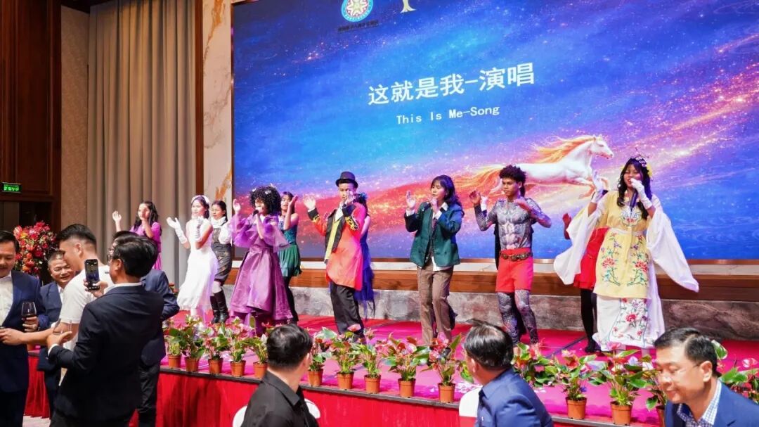 庆典活动还举行了交流晚宴,与会嘉宾朋友纷纷举杯,互祝幸福平安、事业发达。柬埔寨艺术家表演了精彩的歌舞。最后,晚会在脍炙人口的中文歌曲《朋友》的歌声中圆满结束。