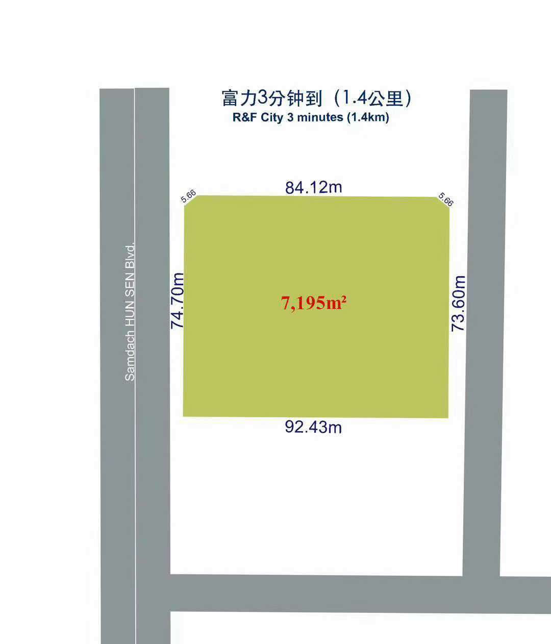 出售面积:7,195平方米(74.70米 X 92.43米)